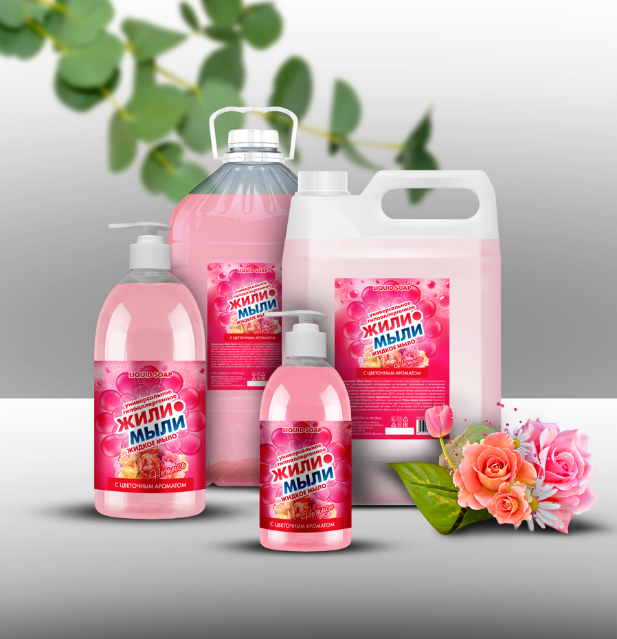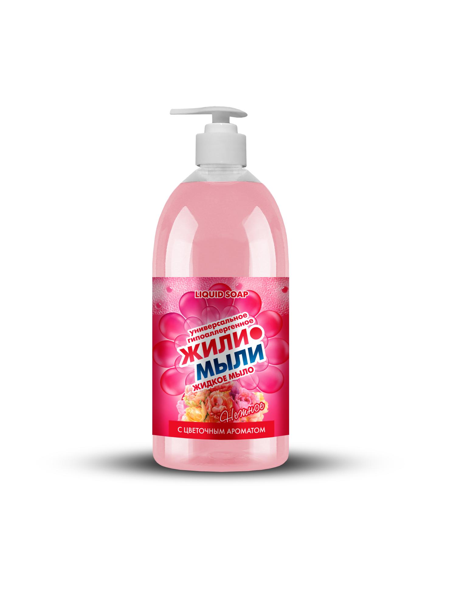 7. Жидкое мыло «Жили-Мыли‎» с Цветочным ароматом 1 л, дозатор, флакон
