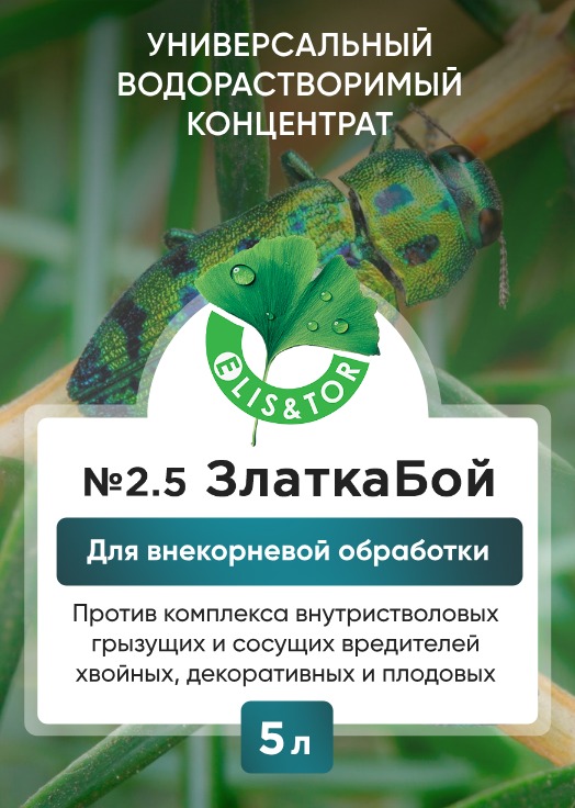 Универсальный концентрат с широким спектром действия, против комплекса внутристволовых, грызущих и сосущих вредителей, включая скрытоживущих и хвоегрызущих насекомых-вредителей. На 200-400 литров.