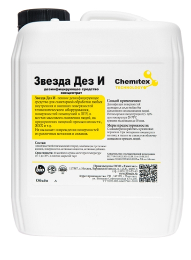 Используется при профилактической дезинфекции на предприятиях пищевой промышленности для обработки поверхности технологического оборудования, производственные ёмкостей, тары, кузовов транспортных средств используется 0,1-3% раствор «Звезда Дез М». Время обработки от 3 до 20 минут при температуре 15 – 70°С. В автобарьеры, дезковрики заливается 0,2-0,5% препарата. Водный раствор стабилен в течение 15 дней, заменяется по мере загрязнения.