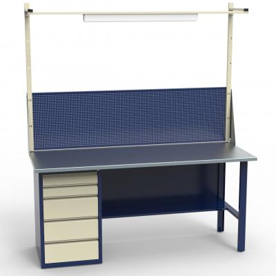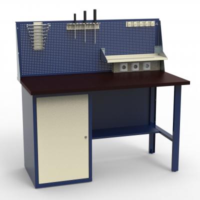 Стол монтажный с тумбой и фанерной столешницей и экраном инстру...