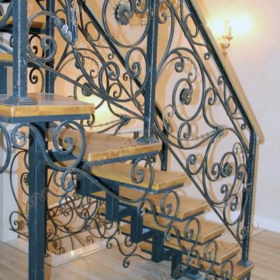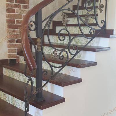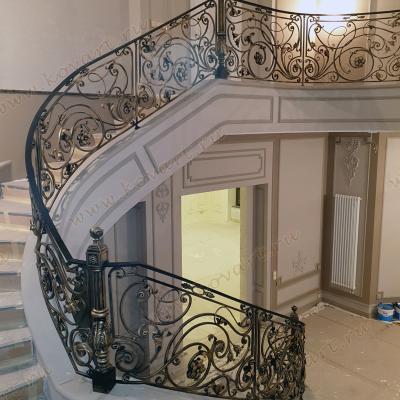 Кованые перила для лестницы с черно-золотым узором
