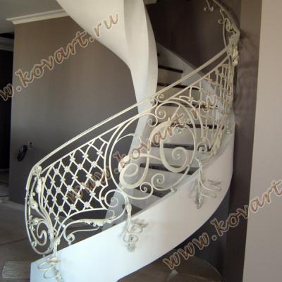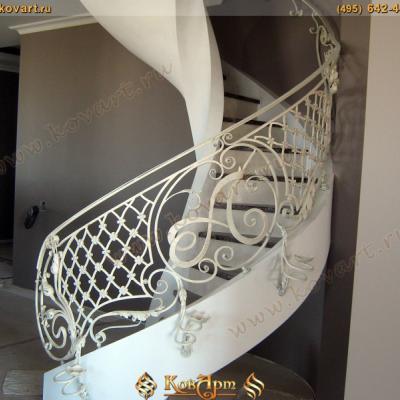 Кованая белая винтовая лестница с литерой