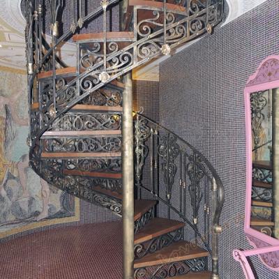 Кованая винтовая лестница с золотой патиной