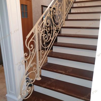 Лестница с коваными узорчатыми перилами белого цвета