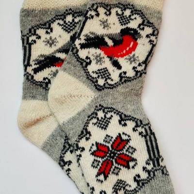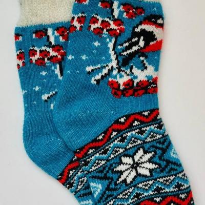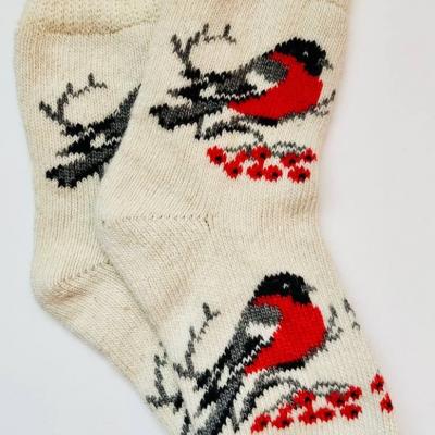 Носки теплые вязаные с рисунком "снегири на рябине" ...