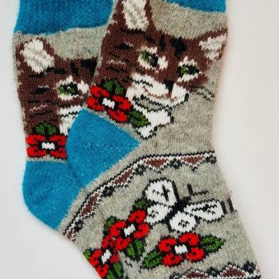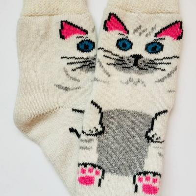 Тёплые женские шерстяные носки с рисунком "котик" ...