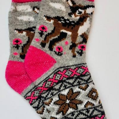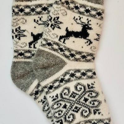 Тёплые женские шерстяные носки с рисунком "олени" вяз...