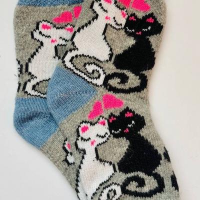 Тёплые женские шерстяные носки с рисунком "котики in love&...
