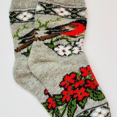 Тёплые женские шерстяные носки с рисунком "снегири весной&...