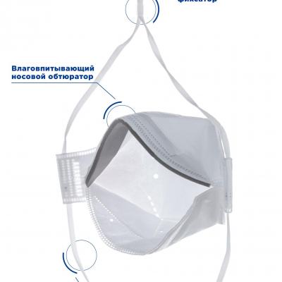 Полумаска фильтрующая трехпанельная с защитой от аэрозолей (рес...