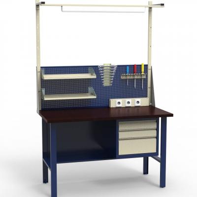 Стол монтажный с тумбой и фанерной столешницей и экраном инстру...