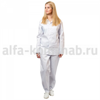 Халат мед.женский М-259(дл.рукав,молния) Тк. смесов. Белый ...