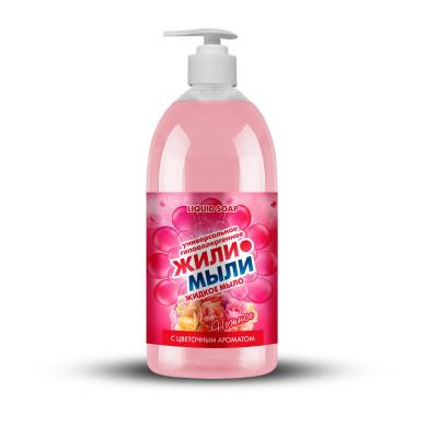 Жидкое мыло «Жили-Мыли» с Цветочным ароматом 1 л, дозатор, фла...