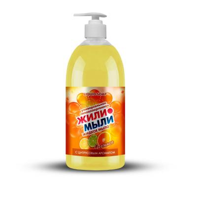Жидкое мыло «Жили-Мыли» с Цитрусовым ароматом 1 л, дозатор, фл...