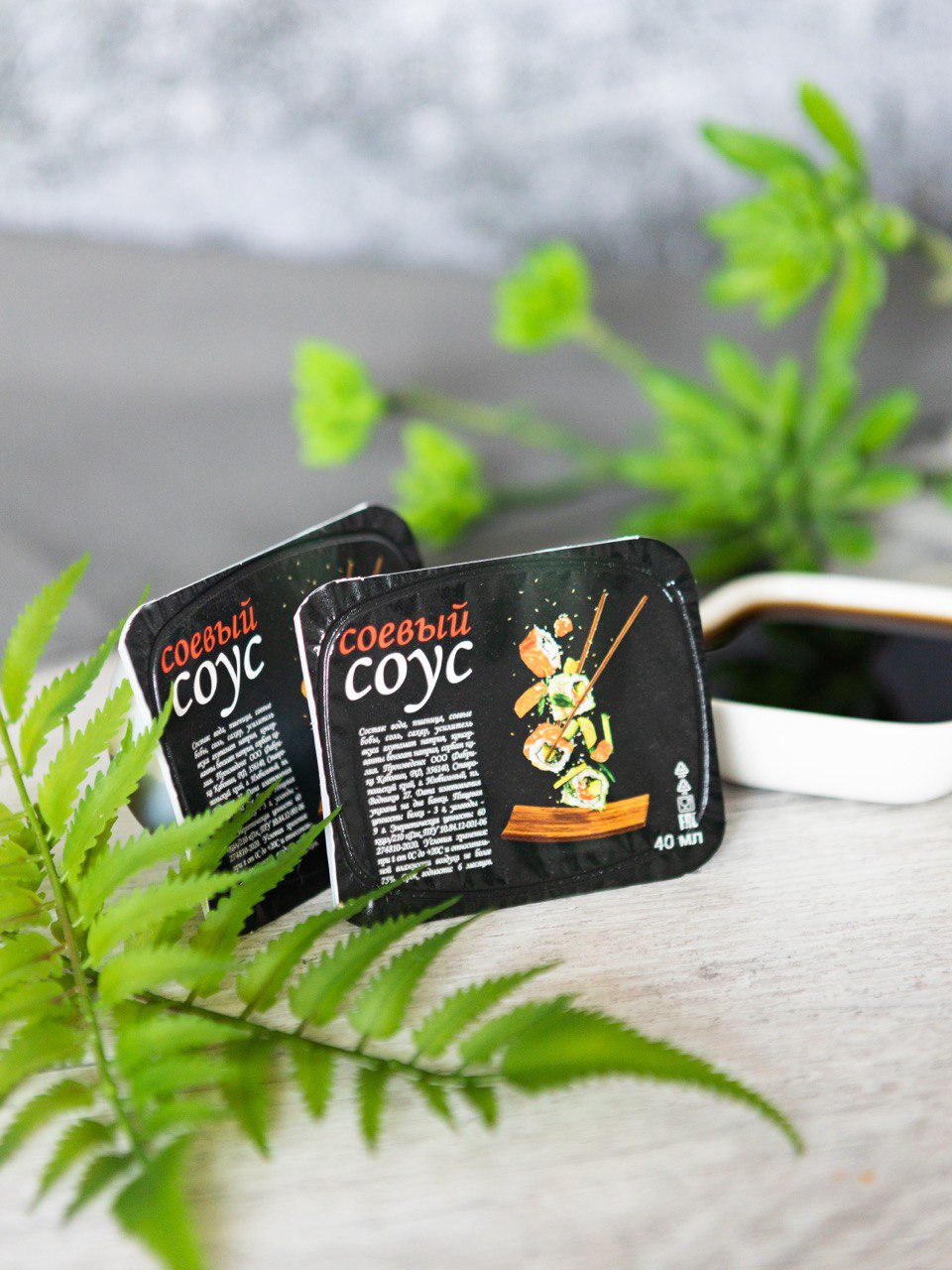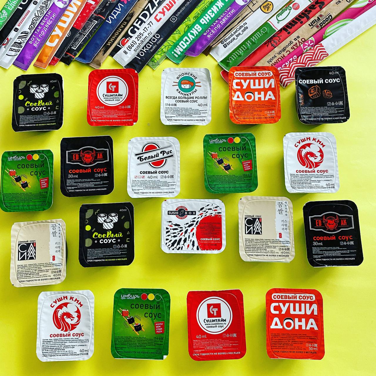 Производитель брендированной продукции для ресторанов, суши-баров и доставки еды. Соевый соус в дип-потах, имбирь и васаби в саше, а также палочки для еды